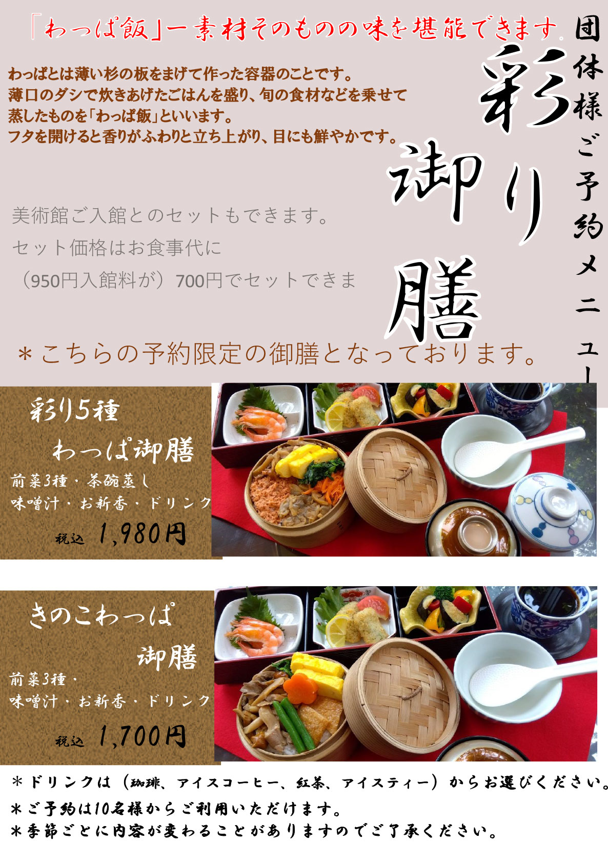 お食事を楽しんでいただけます。